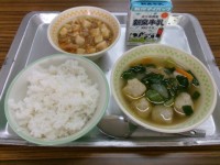 今日の給食は ごはん 牛乳 肉団子スープ 麻婆丼 です。麻婆丼のピリッとし...