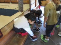 日本庭園で茶の湯体験をしました。靴の並べ方,敷居や畳のヘリを踏まないこと,正しい...