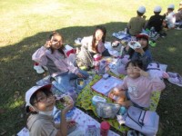 大仙公園(芝生広場)の木の下で、みんな仲良くお弁当を食べることができました。気...