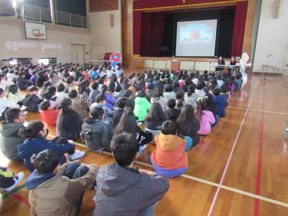 2時間目は、1年生から4年生の児童がシンガポールの国歌でお出迎えをしました。