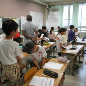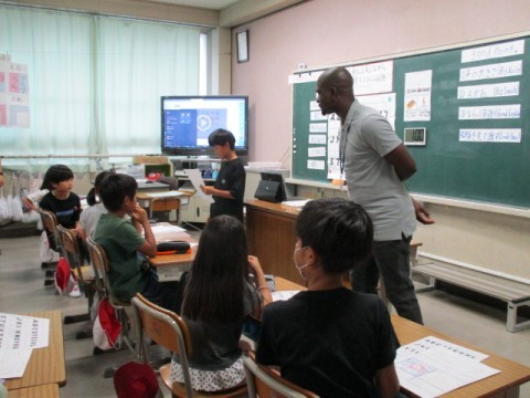 3年生の外国語の授業です。今日は、アルファベットを学びました。ABCソングを歌って、順番を覚えたり、自分の名前のイニシャルを紹介したりしました。