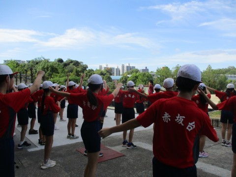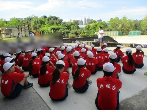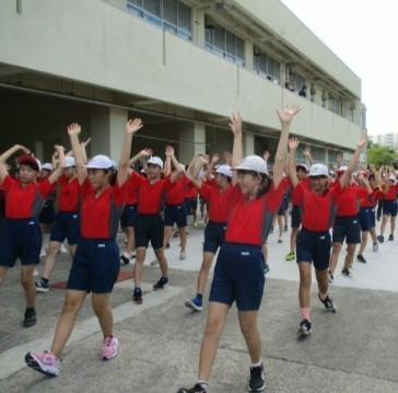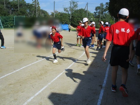 新檜尾台小学校と連合運動会に向けての合同練習を中学校で行いました。