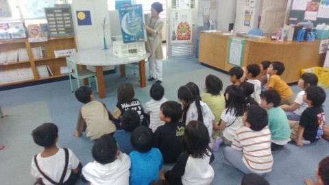 本の貸し出し返却と、司書の方による絵本の読み聞かせがあります。