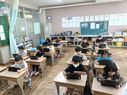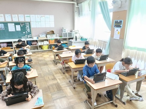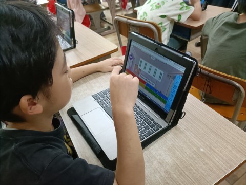 学習した内容を活かして、タブレットで問題を解いています!