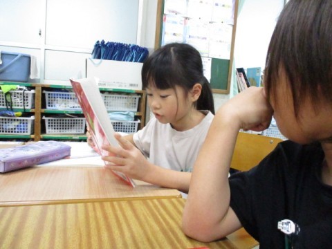 「わたしは,~が気に入りました。なぜなら,~。」の型を使って,それぞれが発表してくれました。