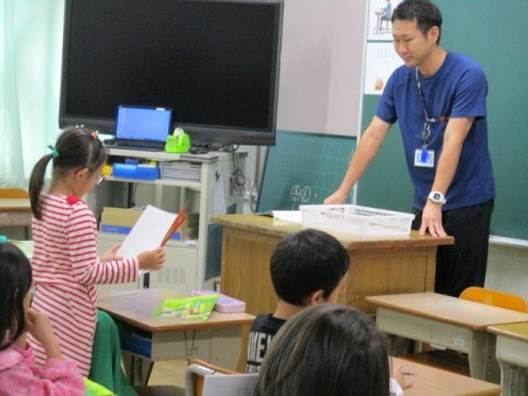 「くじらぐも」のお話を読んで,いいなと思ったところを発表しています。