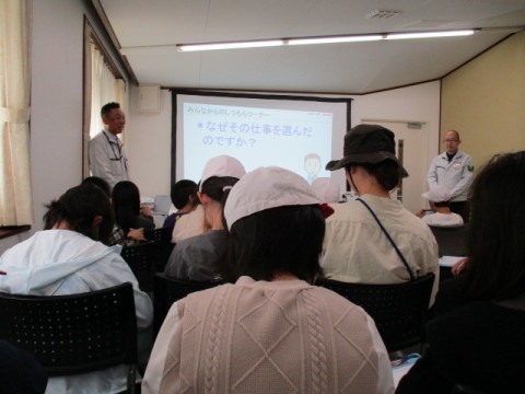 質問コーナーでは,「工場は,どのくらいのお金で,できたんですか?」「休憩時間はどのくらいですか?」等