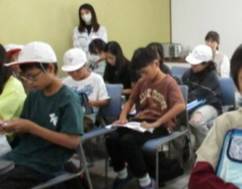 工場見学の後,子どもたちは忘れないうちに,学んだことをしおりに書き込んでいました。