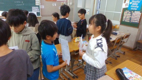 外国語の授業で,マコ先生と一緒にクラスで人気なもの調べをしました。