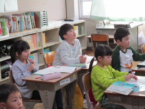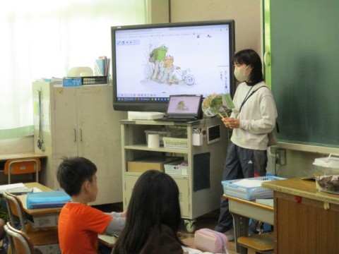 今日は,かたつむりくんに託したおてがみを待つ,がまくんとかえるくんの幸せな時間を思って意見を出し合う授業でした。