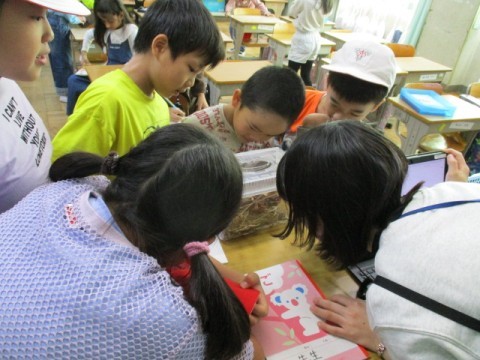 かわいそうだけれど,つかまえて虫かごに入れて2年生の教室に持っていきました。