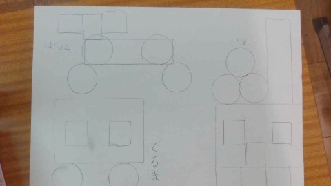 箱の形を写し取って,組み合わせて,いろんな形を作りました。
