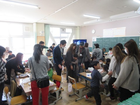 秋のおもちゃ作りの様子です。保護者の皆さんも一緒に作っていただきました。