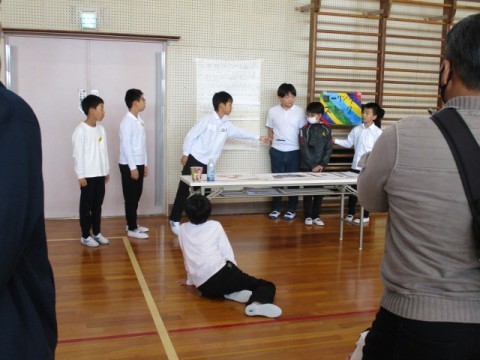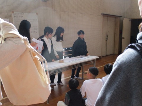 総合的な学習の時間に防災について学んだことを保護者の皆様に聞いていただきました。