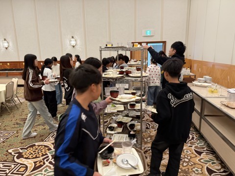 朝ごはんを食べた後には、片付けをします。ごちそうさまでした。