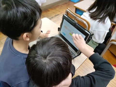 今日の算数は,タブレットを使った「九九神経衰弱」です!