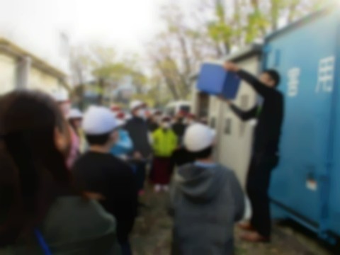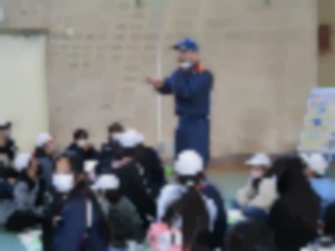 今日は,赤坂台小学校と新檜尾台小学校の5年生と,赤坂台中学校の2年生が,防災体験会を行いました。会場は赤坂台中学校です。南区自治推進課の方々,消防署の方々が講師となって,防災について教えてくれました。この写真は心肺蘇生を体験したり,避難所設営のため,災害用防災倉庫の中身を見せてくださったり,災害用トイレの使い方や準備の仕方等,教えてくれている様子です。