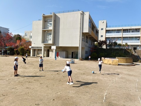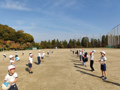 片手で投げたり,両手で投げたり,走って投げたり,ジャンプして投げたり,色々な投げ方に挑戦しました。