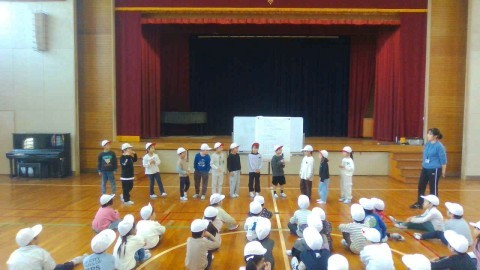 5時間目、1組2組合同で10月、11月生まれのお友だちのお誕生日会をしました。