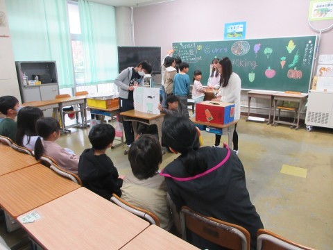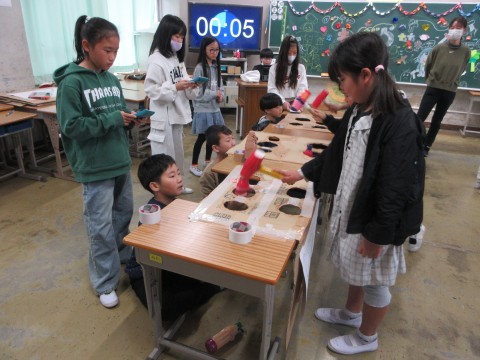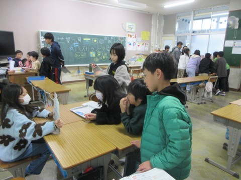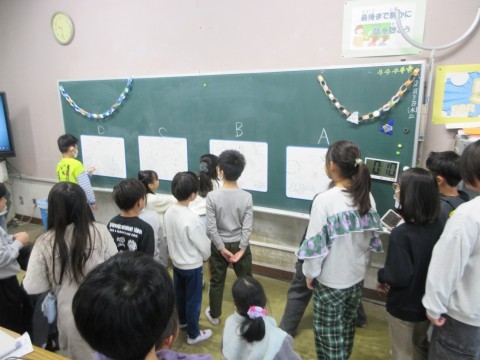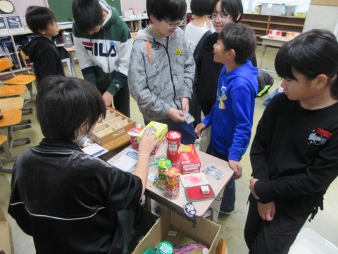 学級ごとに,ゲームやクイズなどを楽しめるお店を営み,班ごとに交代制でお店をまわりました。