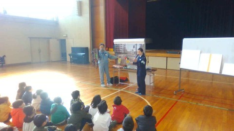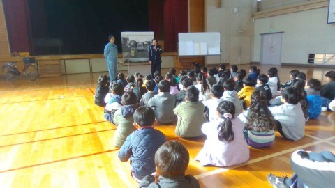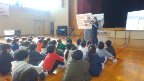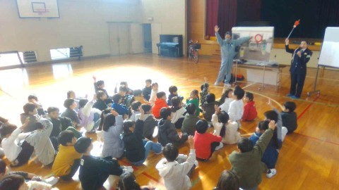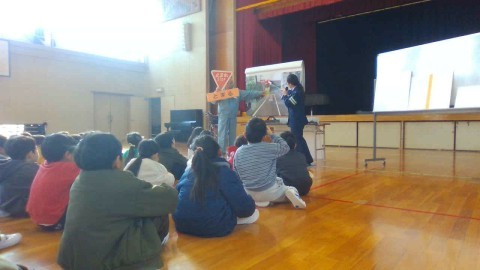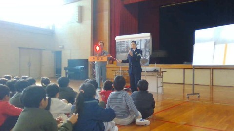 南堺署の警察官の方から、道路の安全な歩行の仕方や交通ルールについてお話を聞きました。