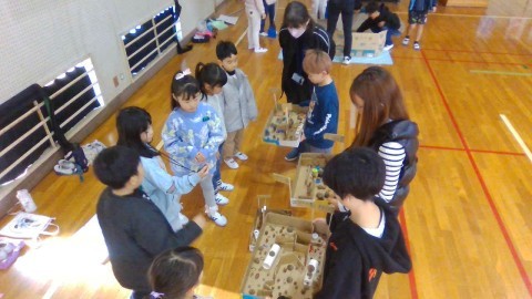 今日は先日した「あきのワクワクランド」を、あゆみ学級のお友だちを招いて行いました。