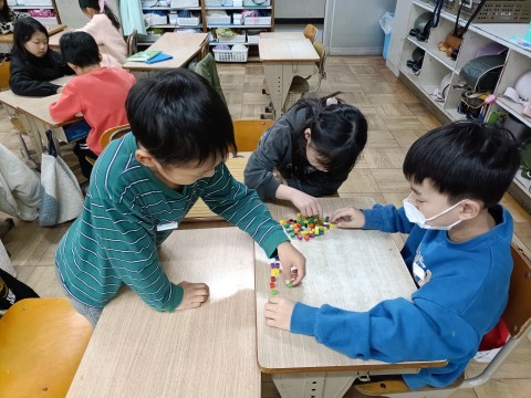 各グループに配られたブロックを全て合わせると,全部でいくつになるかを考えています。