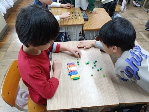 10のまとまりや100のまとまりを作っていき,全て合わせると1000になる数に設定しました。