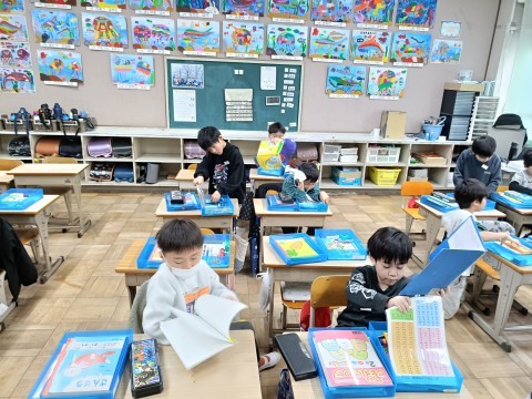 机の中や,お道具箱の整理整頓をしています。