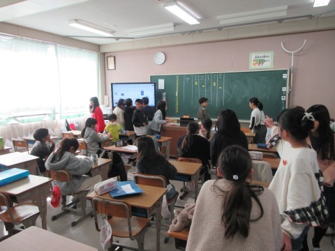 お正月にちなんだ話題で学級レクをしたり,給食当番をしたりしています。