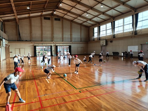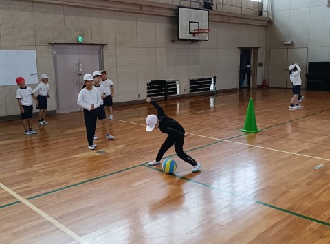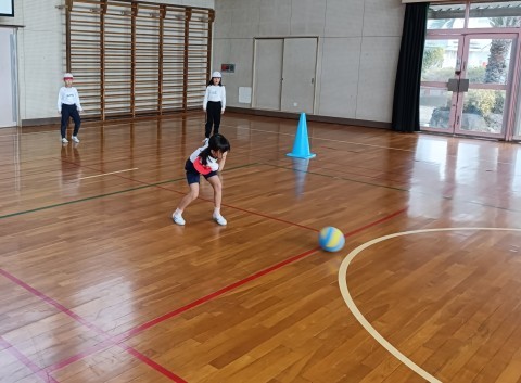 今日の体育は,コロコロバレーボールの1時間目です。