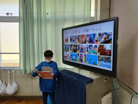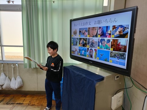 クラスのあいうえお作文を作った後は,一人ひとりがお題の写真を選んで,文を作りました。