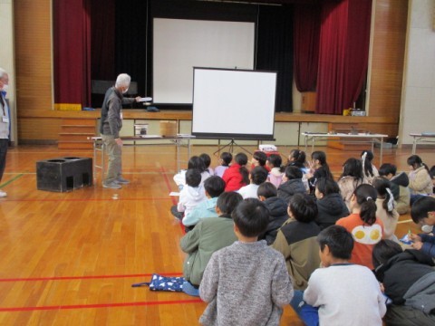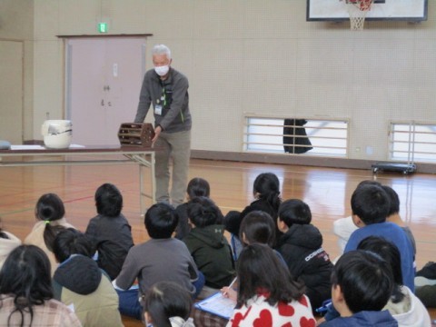 3年生は,今日,堺市博物館の出前授業がありました。社会科 むかしの暮らし,むかしの道具について紹介してもらいました。七輪や湯たんぽ,こたつ,石臼など,絵本に出てくるような昔の道具について教えてもらいました。湯たんぽは,意外にも,知っている子どもたちが多くて驚きました。みんな興味津々で,お話に聞き入っていました。