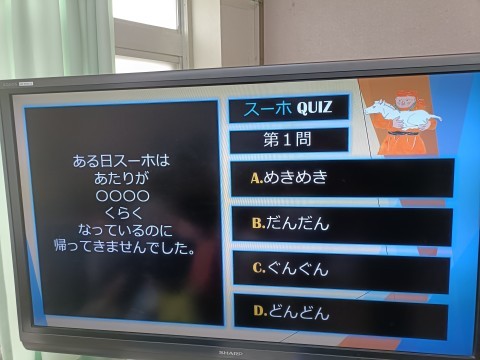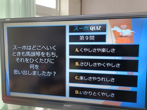 スーホの白い馬の設定を確認した後,スーホの白い馬クイズの第二弾を行いました。