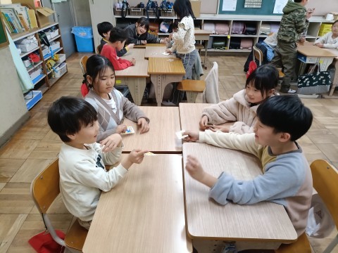 カードに書いている分数の大きさに着目して,大きい順に出していくゲームをしました。