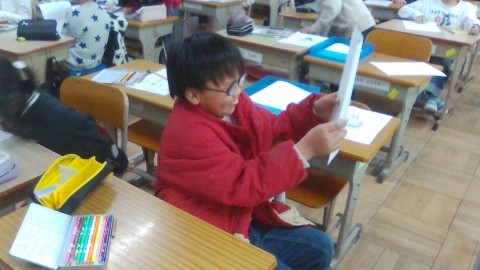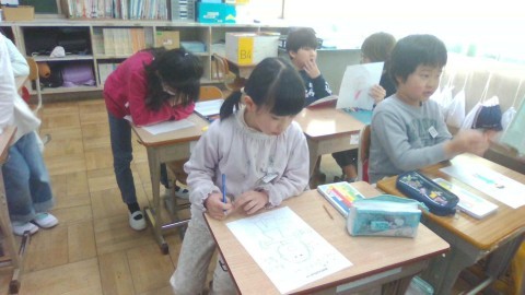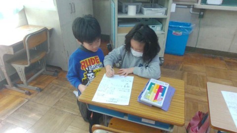 友達に書いてもらったことを読んでいる児童の顔は,どこか恥ずかしそうで,とっても嬉しそうでした。