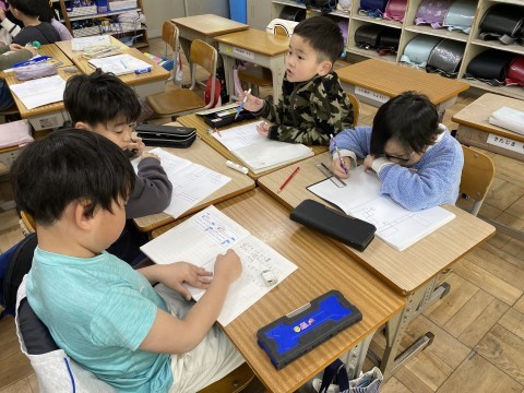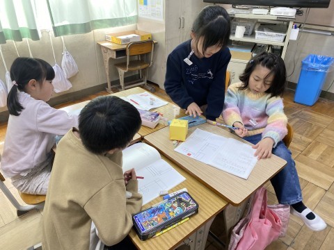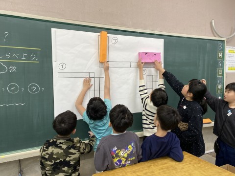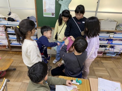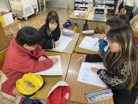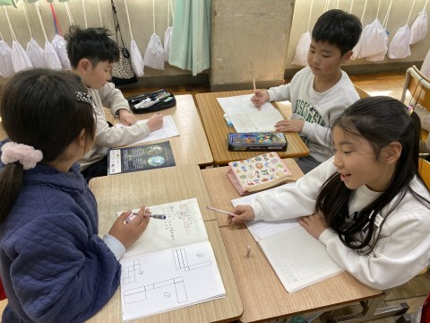 班でそれぞれ箱の形を調べ,理由を話し合いました。