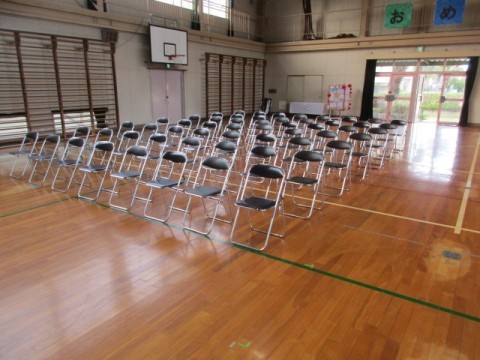 明日の入学式の式場は、このようにできあがりました。新6年生のみなさん、6年生になって一番最初の取組でしたね。ありがとう。明日の入学式にも、1年生を案内してくれる6年生がいます。赤坂台小学校全体で、新1年生のみなさんを歓迎します。