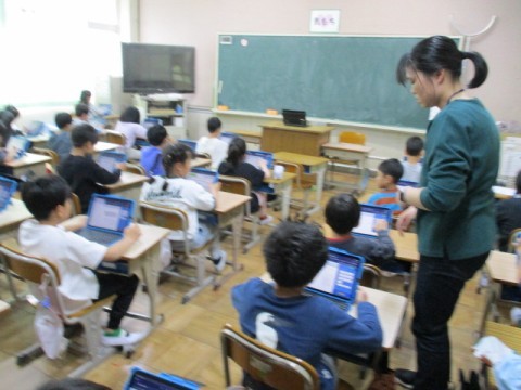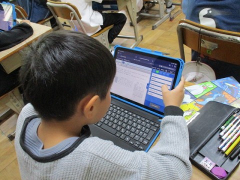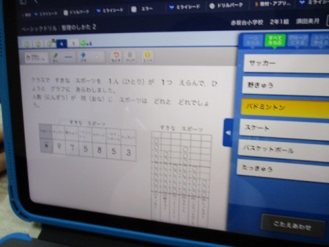 2年生のあかさかタイムの様子です。グラフの数値を読み取る問題です。2月に新しいiPADになり,使いやすくなりました。子どもたちも一生懸命ドリルパークに挑戦しています。