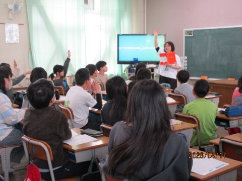 6年生の国語の授業のようすです。単元の登場人物について話しています。「●●さんは,律に似ているかなあ?どっちかなあ?」とクラスメートのことについて話し合っていました。友達から自分の一面を指摘され,嬉しいような,はずかしいような…。授業をとおして学級づくりもすすんでいます。