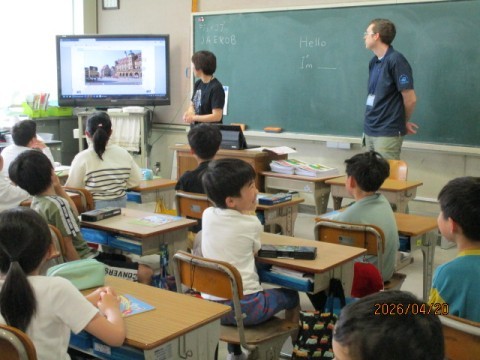 そして、ジェイコブ先生が、行ったことのある国についてもお話してくださいました。3年生は、とても上手に英語の発音ができていましたよ。