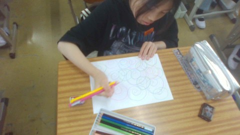 図工では「線から生まれたわたしの世界」に取り組んでいます。