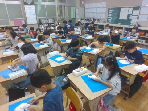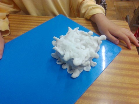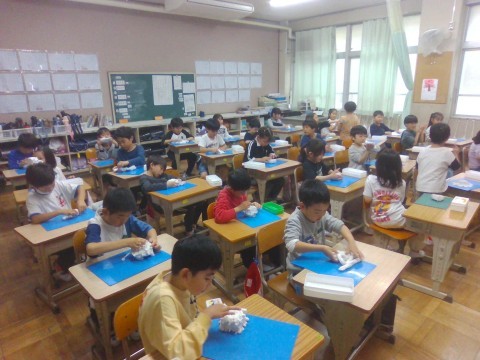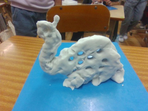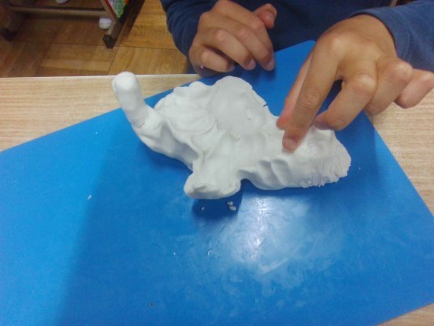 粘土のかたまりから,ひねったり,のばしたり,穴をあけたりして,生きものをつくりだしました。