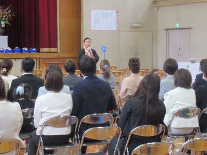 入学式の後、PTA会長さんからPTAに関するお話をしていただきました。