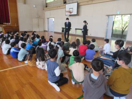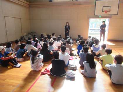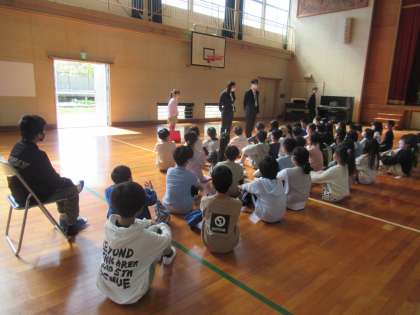 始業式の後、そのまま体育館に残って3・4・6年が「学年開き」をしていました。