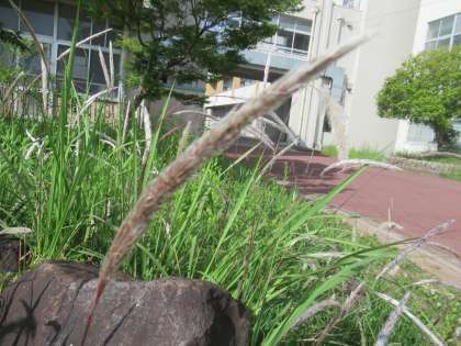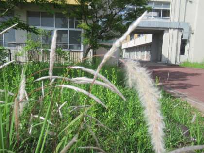 学校の敷地には綿毛のついた植物もたくさん生えています。