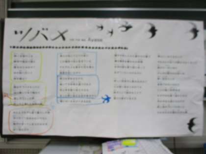 音楽室で2年生から6年生まで歌っている愛唱歌「ツバメ」