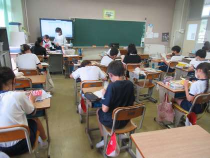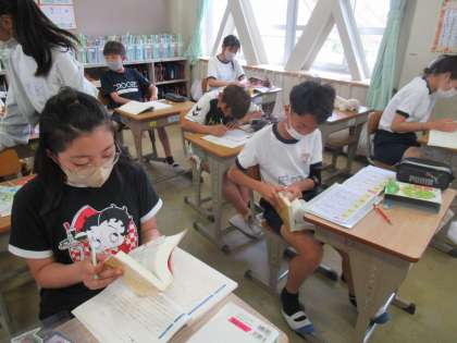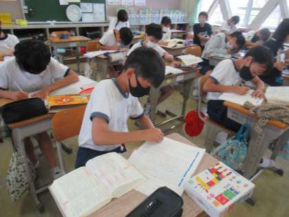 1組では、教科書を読みながら分からない単語の意味調べをしていました。