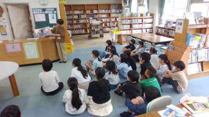 図書館司書の先生に、絵本の読み聞かせをしていただきました。