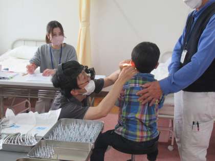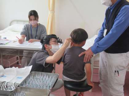 ひろせ耳鼻咽喉科の院長先生にお越しいただき、1・2年全員と3年生以上は抽出で、耳鼻科健診を行いました。